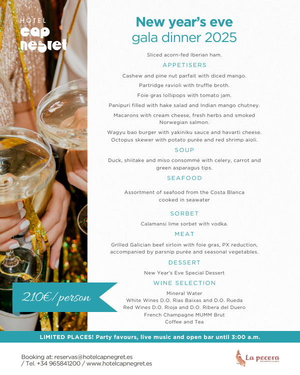 Vier oudejaarsavond in Cap Negret, Altea. Geniet deze oudejaarsavond van een onvergetelijke avond met een nieuwjaarsdiner, cotillon en livemuziek.
